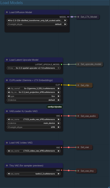 Tiny VAE : taeltx2.3 for the samplers preview so you can have an idea of how the video is driven while it is being generated.